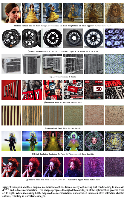 $\mathcal{A}^{FLIPD}(c)$를 증가시키는 방향으로 $c$를 optimize해서 memorization mitigation을 진행했다. 특정 range에서는 memorization이 완화되지만, 인공적으로 $LID_\theta(\cdot|c)$를 증가시켜서 과도하게 chaotic tecture를 도입한다. 본 논문에서는 future work을 통해 다른 scheduling을 사용해 $c$의 optimization process를 안정화할 수 있을 것이라고 말한다.