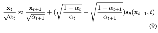 $\mathbf{x}_t$를 $\frac{\mathbf{x}_t}{\sqrt{\alpha_t}}$로 rescale하고 (5)를 다시 쓰면, DDIM은 first-order ODE solver로 여겨질 수 있다. 이에 대응되는 inversion은 다음과 같다.