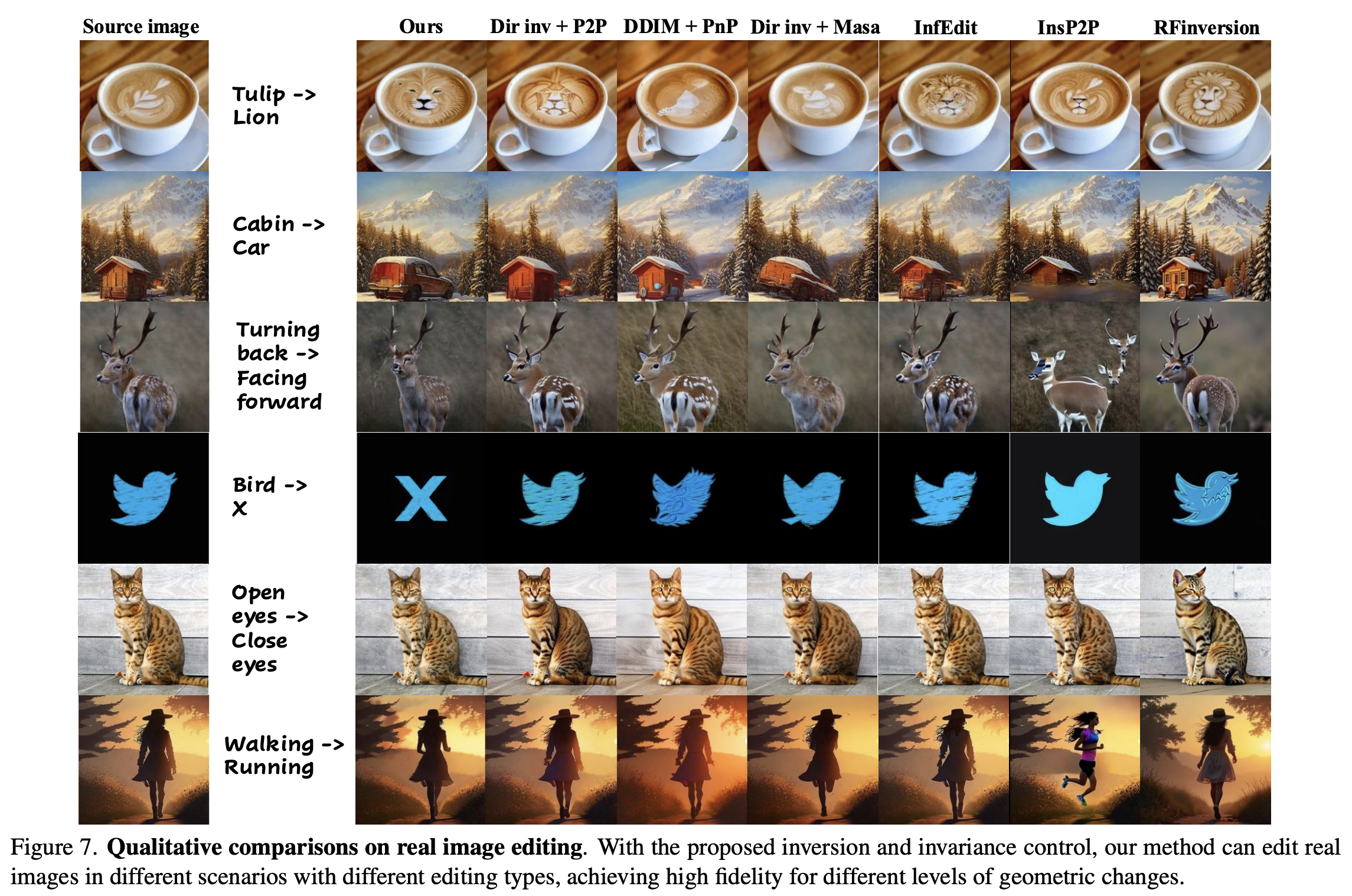 만약 real image가 model의 domain 밖에 존재하고 inversion이 generation process에 너무 벗어나면, inversion이 model의 prior 분포와 fit하지 않고 text-to-image alignment가 mismatch됐기 때문에 module은 정확히 content를 control할 수 없다. Fixed-point iteration의 computational efficiency도 한계점이다.