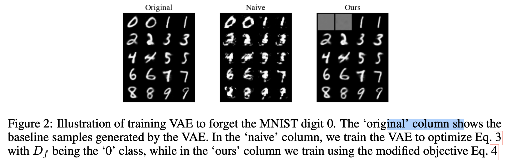 (1)과 유사하게, (3) 또한 잊어야할 데이터의 log-likelihood를 낮출 필요가 있다. ELBO밖에 모르는데, naive하게 ELBO로 likelihood term을 대체하는 것은 안 좋은 결과를 이끈다.