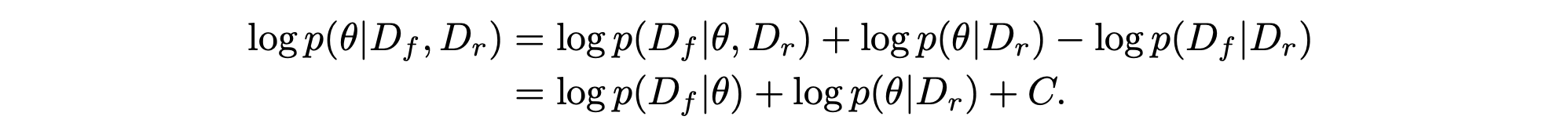 Forgetting을 위해서, $D_r$에 대해서만 condition된 posterior만 보자면 다음과 같다.
