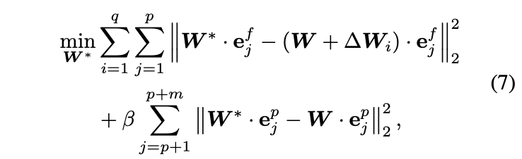 위 objective는 여러 LoRA matrix들을 통합하는 $\mathbf{W}^*$를 찾는데, 이는 closed-form으로 구할 수 있다.
