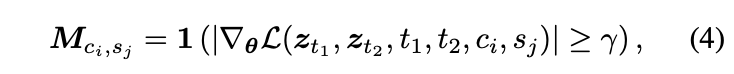 본 논문은 모든 파라미터를 finetuning시키지 않고, 특정 파라미터만 선택해 finetuning시킨다. 그래서 어떤 파라미터를 선택할 지가 매우 중요하다. 본 논문은 이를 위해서 prompt와 seed augmentation을 통해 강화된 concept-specific saliency map을 제안한다. Saliency map은 prompt context와 random seed에 따라 다양하다. 그래서 본 논문은 다양한 saliency map의 intersection을 구한다.