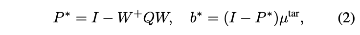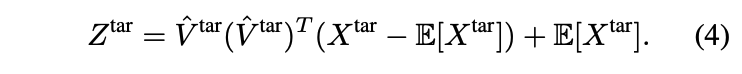 $\operatorname{Cov}(X^{tar})$의 low-rank property때문에 $Z^{tar}$는 $X^{tar}$와 매우 연관된다. (3)을 최적화하는 $P^*, b^*$는 다음과 같다.