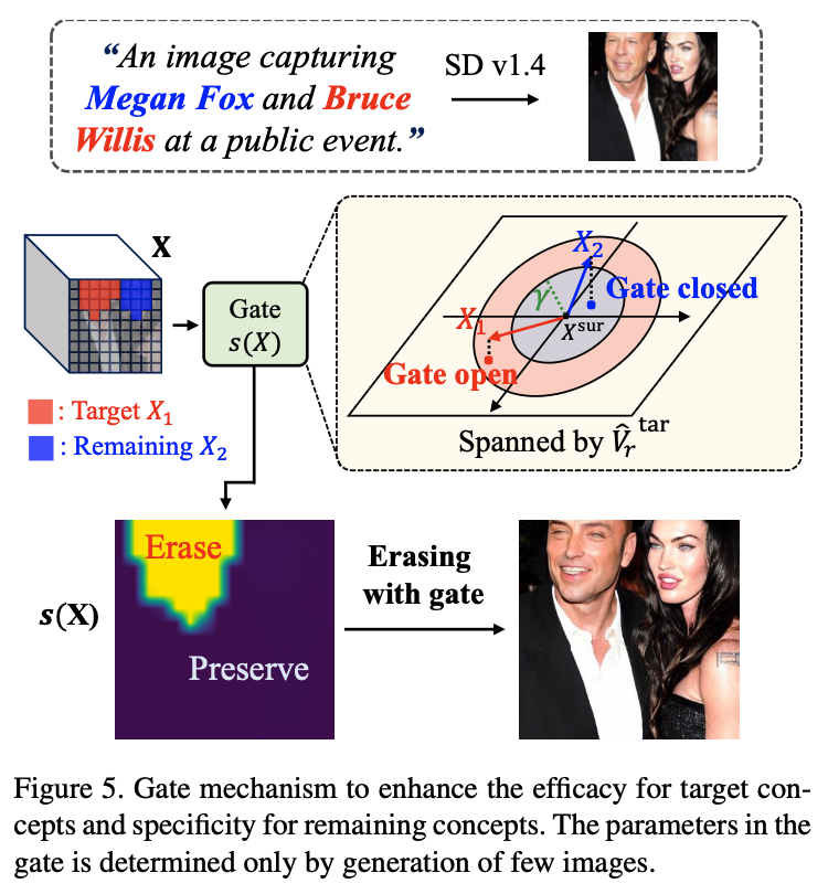 - Gate를 통해서 target concept과 관련이 클 경우에만 gate를 열어서 target concept에 대해서만 지우려고 함