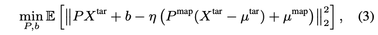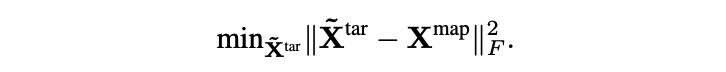Target concept을 갖는 $X^{tar}$을 mapping concept의 subspace로 projection시키기 위해, 본 논문은 (1)을 다음과 같이 수정한다.