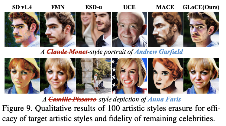 - Efficacy : 생성된 이미지에서 target concept이 얼마나 잘 지워졌나
