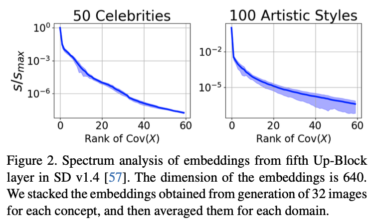 위 결과를 통해 본 논문은 다양한 concept들에 대해 적은 수의 singular value들만이 중요하다는 것을 관찰했다.