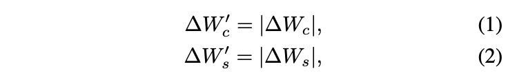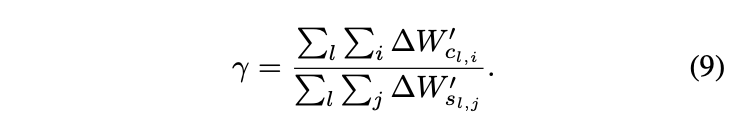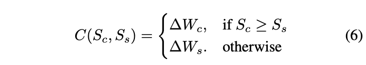 Dominant element들의 small subset이 original generation effect을 달성할 수 있기 때문에, 본 논문은 $\Delta W^\prime_c$와 $\Delta W^\prime_s$로부터 가장 높은 값들을 통해 top K를 뽑는다.