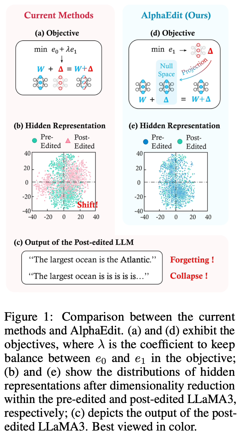 [평범한 대학원생이 하는 논문 간단 요약] AlphaEdit : Null-Space Constrained Knowledge Editing for Language Models (ICLR 2025) 본문