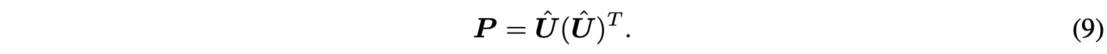 그러고 나서 $\mathbf{U}$에서 non-zero eigenvalue들에 대응되는 eigenvector들은 제거하고 나머지만 남긴 $\hat{\mathbf{U}}$를 구한다. 이를 통해서 다음과 같이 projection matrix $\mathbf{P}$를 구한다.