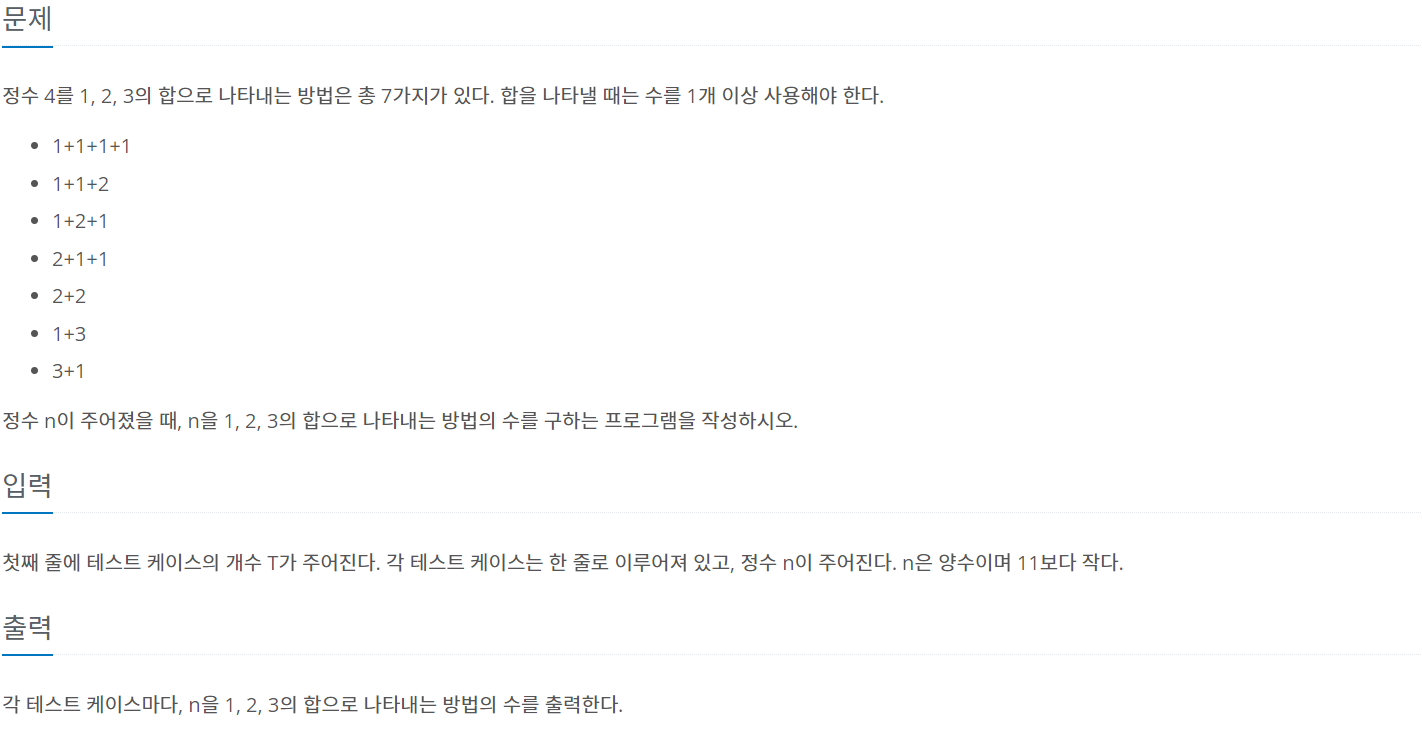 9095번: 1, 2, 3 더하기