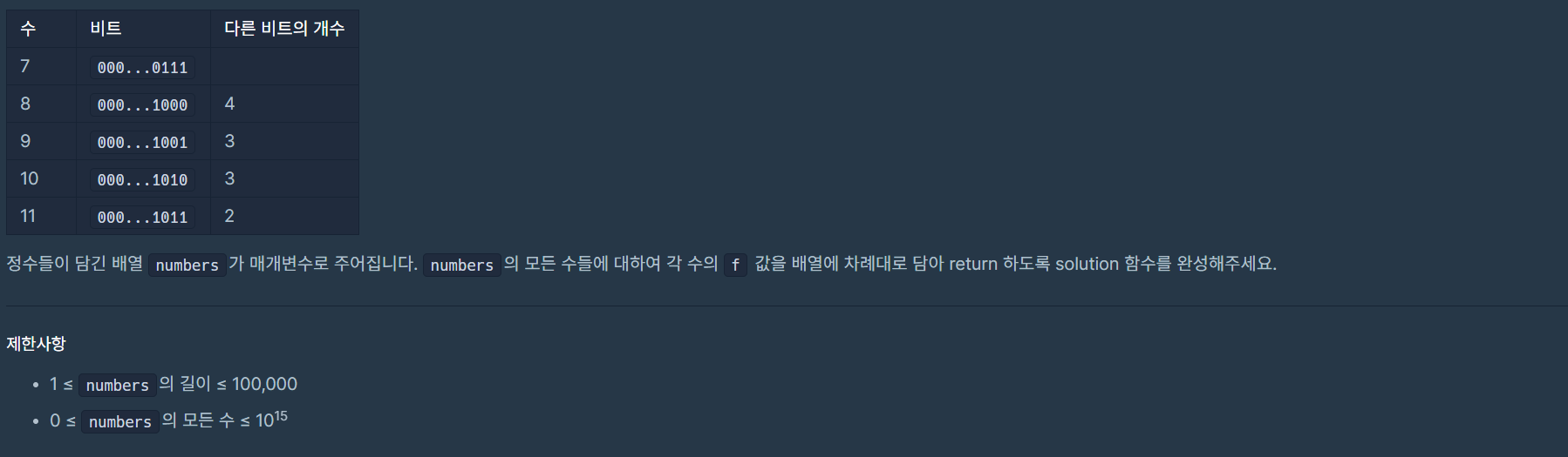 [Programmers_Python] 2개 이하로 다른 비트 본문