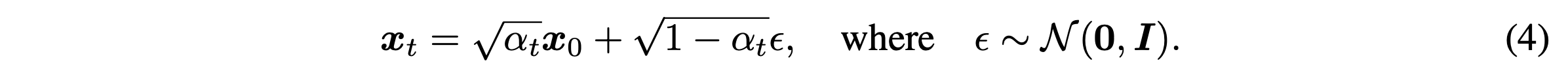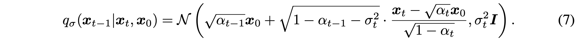 $$q_{\sigma}(x_T|x_0) = \mathcal{N}(\sqrt{\alpha_T}x_0,(1-\alpha_T)\mathbf{I})$$