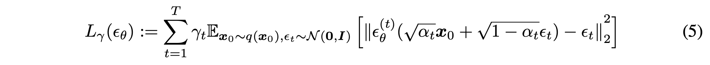 Model $\epsilon_\theta^{(t)}$의 parameter $\theta$가 다른 $t$에 대해 공유되지 않는다면 $\epsilon_\theta$에 대한 optimal solution은 $\gamma$에 depend하지 않는다. 이 특성은 두가지를 내포한다. (1) DDPM에서 surrogate objective로 $L_1$의 사용을 정당화 한다. (2)$J_\sigma$의 optimal solution은 $L_1$의 것과 동일하다. 그렇기에 model $\epsilon_t$에서 $t$에 따라 paremeter들이 공유되지 않으면, $L_1$ objective가 $J_\sigma$의 surrogate objective로 사용될 수 있다.