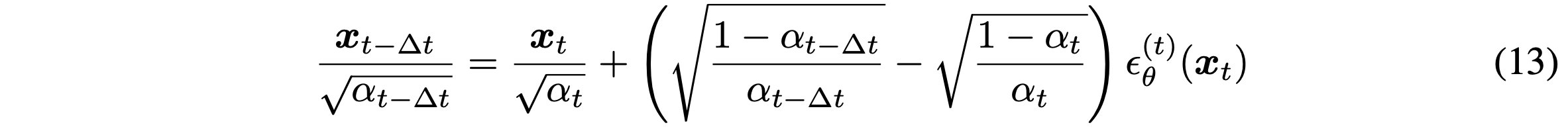 식 (10)을 통해, $x_t$를 통해 생성된 $x_{t-1}$를 아래와 같이 쓸 수 있다.