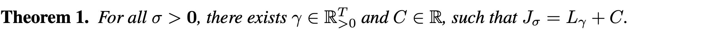 위 정의를 통해 $\sigma$에 따라 objective가 다르기에 다른 모델을 학습 시켜야하는 것으로 보인다. 하지만 아래의 Theorem 1.을 통해 특정 $\gamma$에 대해 $J_\sigma$와 $L_\gamma$가 동일하다는 것을 보인다.