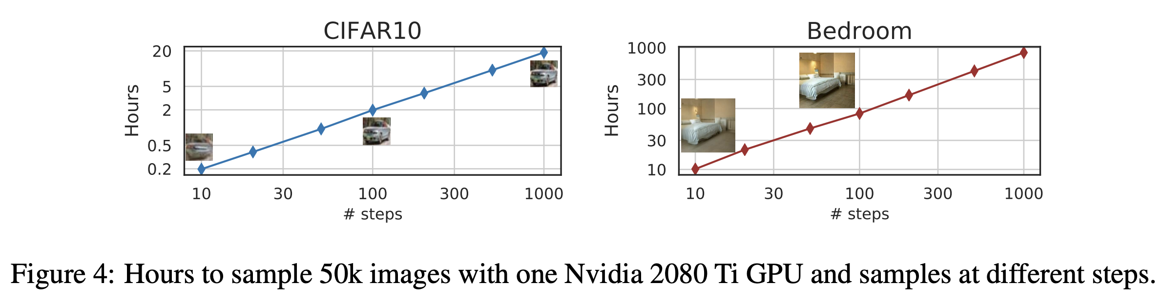 이러한 모델들의 치명적인 단점은 많은 iteration을 통해 이미지를 생성한다는 것이었다. DDPM에서 보면 generative process는 diffusion process의 reverse를 근사화해서 얻어지는데, 이때 수천 번의 스텝을 거쳐야 이미지를 생성할 수 있다. GAN과 비교하면 엄청난 속도 차이를 가진다.