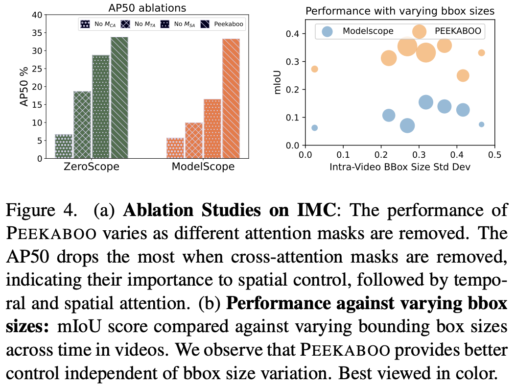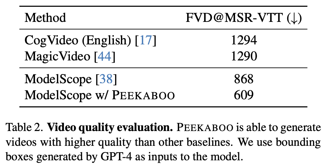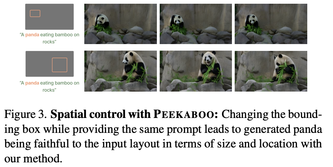 PEEKABOO가 모델의 training bias를 극복하고 video generation에서 control을 향상시켰다고 한다.