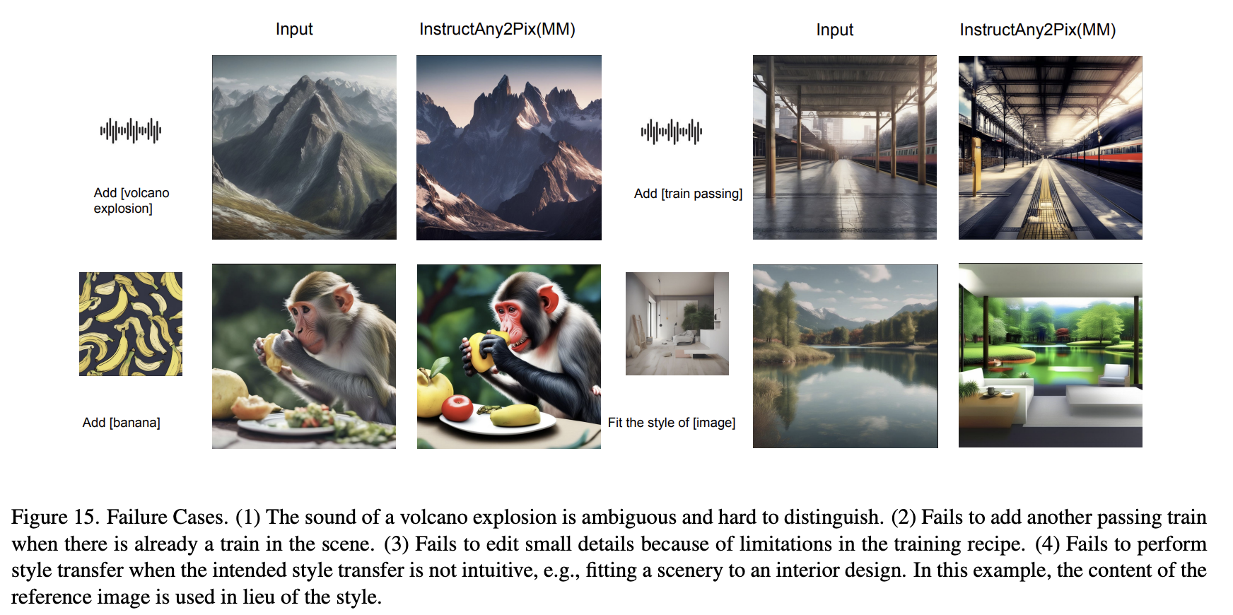 본 논문의 method는 다른 modality의 많은 input을 포합하는 복잡한 수정 작업을 수행할 수 있다. 본 논문의 method는 instruction-guided image editing의 경계를 극적으로 확장시켰다.