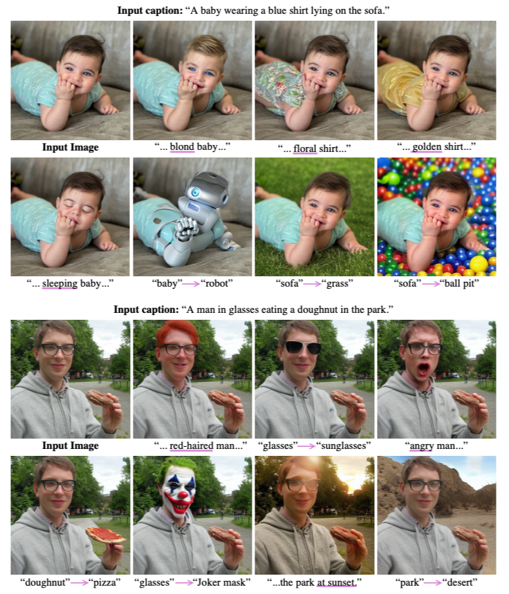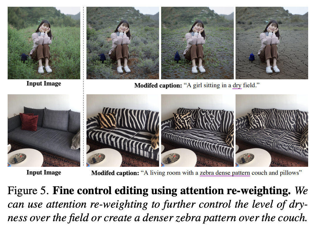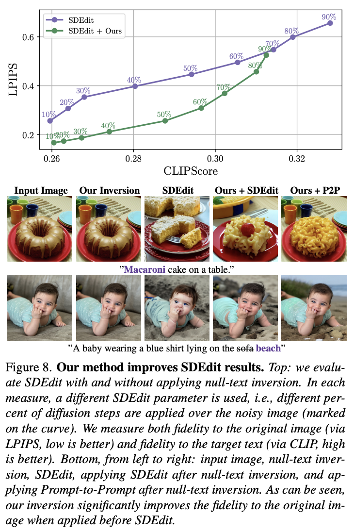 이를 통해 본 논문은 Prompt-to-Prompt의 text editing을 real image에 가능하게 한 첫 방식이라고 소개한다. 또 model을 tuning할 필요없다는 다른 방식들과의 강점을 지닌다고 소개한다.