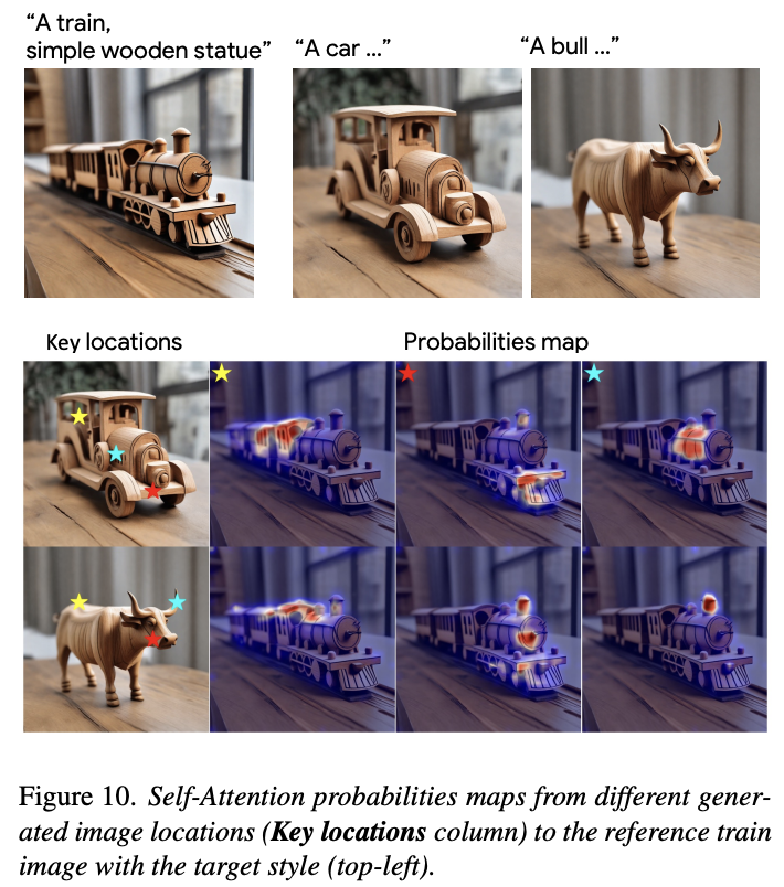 위 결과를 통해 self-attention tokens sharing은 global style transfer를 수행하는게 아니라 semantically meaningful way로 style을 매칭시킨다는 것을 보여준다. 또한 의미적으로 연관된 지역을 강조하는 것 또한 볼 수 있다.
