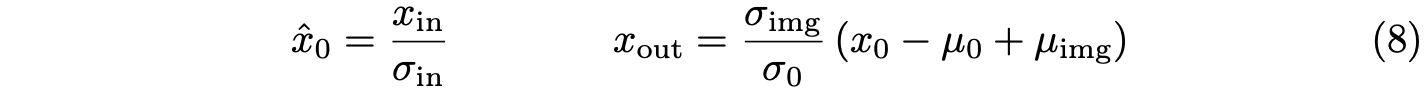여기서 $\mu_{img}, \sigma_{img}$는 VAE encoder를 통해 encoding된 target image(edited first frame)의 latents의 평균과 표준편차이다. 모든 normalization은 per-channel로 행해지고, $\sigma_{in}$는 모든 프레임에 걸쳐 계산되어지고 $\mu_0, \sigma_0, \mu_{img}, \sigma_{img}$는 first frame에 대해 계산된다.