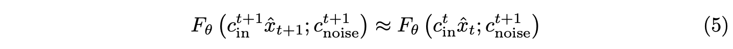 $\sigma_t$는 $t$에서의 scheduled noise level이고, $c^t_{skip}, c^t_{in}, c^t_{out}$, $c^t_{noise}$는 noise schedule과 timestep $t$에 dependent한 coefficient들이다. $F_\theta$는 neural network이다.