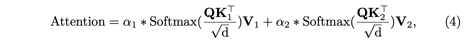 본 논문에서 제안한 Adaptive Prompts Alignment는 위 이미지에서 (a)에서처럼 $K_1, V_1$와 $K_2, V_2$는 유지하고 $Q$를 공유하는 것이다. 여기서 $Q$는 전 layer로부터 온 feature라고 이해했다. 그래서 cross-attention 계산은 다음과 같이 진행된다.