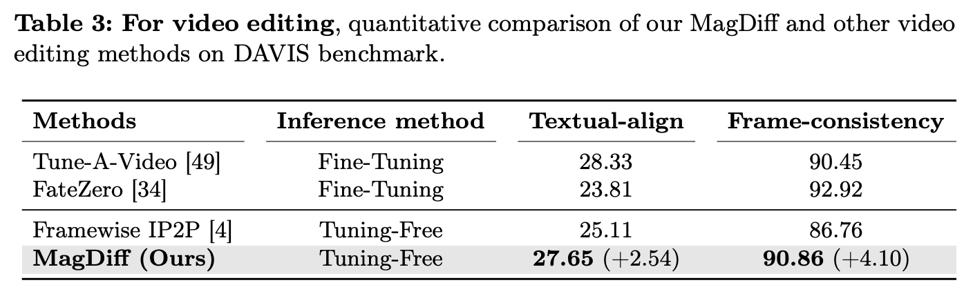 - MagDiff는 multi-scale contextual 정보를 latent space에 통합함으로써 생성되거나 editing된 video의 high-fidelity를 향상시키는 high-fidelity alignment를 도입한다.