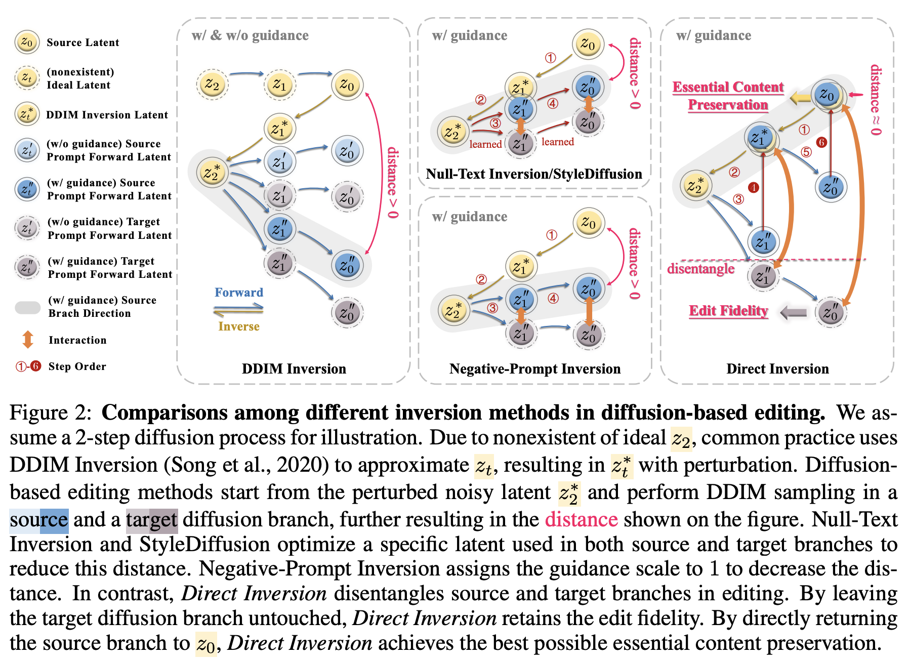 특히, Direct Inversion에서 source branch는 이탈한 경로를 직접 수정한다. 이는 다음과 같은 기존 방법들의 문제들을 해결한다.