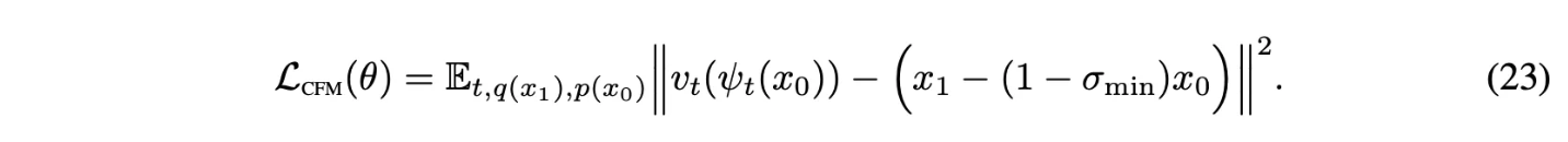 $\mathcal{L}_{FM}(\theta) = \mathbb{E}_{t,p_t(x)} \Vert v_t(x) - u_t(x) \Vert^2$