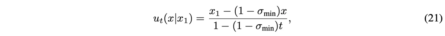 $\psi_t$는 noise distribution $p_0(x|x_1) = p(x)$를 $p_t(x|x_1)$로 push.