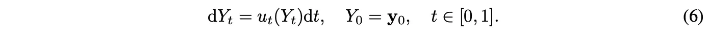 $X_0 = x_0$로 시작해서 ODE(1)은 $p_0$를 따르는 sample $\mathbf{x}_1$을 생성하기 위해서 $t : 0\rightarrow1$에 대해서 적분