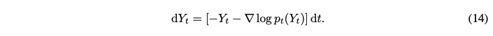 → (13)의 wiener process $W_t$를 $\nabla \rm{log}p_t(Y_t)$로 근사해서 변환