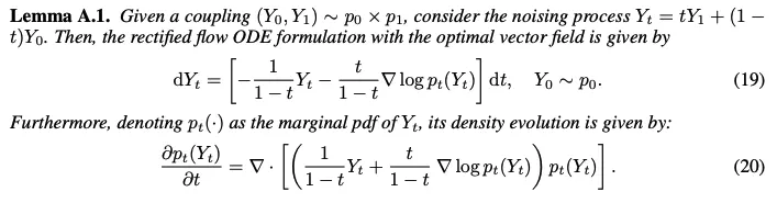 Standard rectified flow(6)를 Lemma A.1 (19)처럼 ODE로 정의함