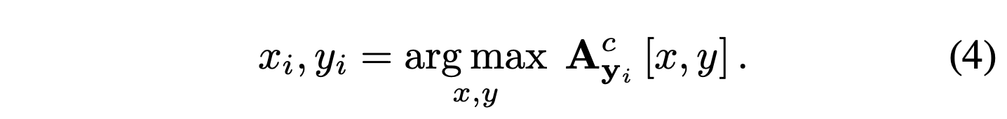 Subject token $\mathbf{y}_i$에 대해서 먼저 maximum cross-attention value에 대응되는 공간적인 coordinate $(x_i,y_i)$를 query한다.