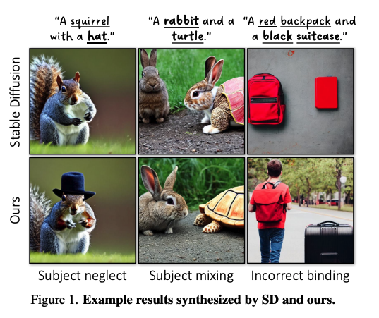 거대한 text-image dataset으로 T2I diffusion model을 학습함에도 불구하고, 주어진 text prompt와 정확히 align된 이미지를 생성하는 것에는 한계가 있다. 아래와 같은 issue들이 존재한다.